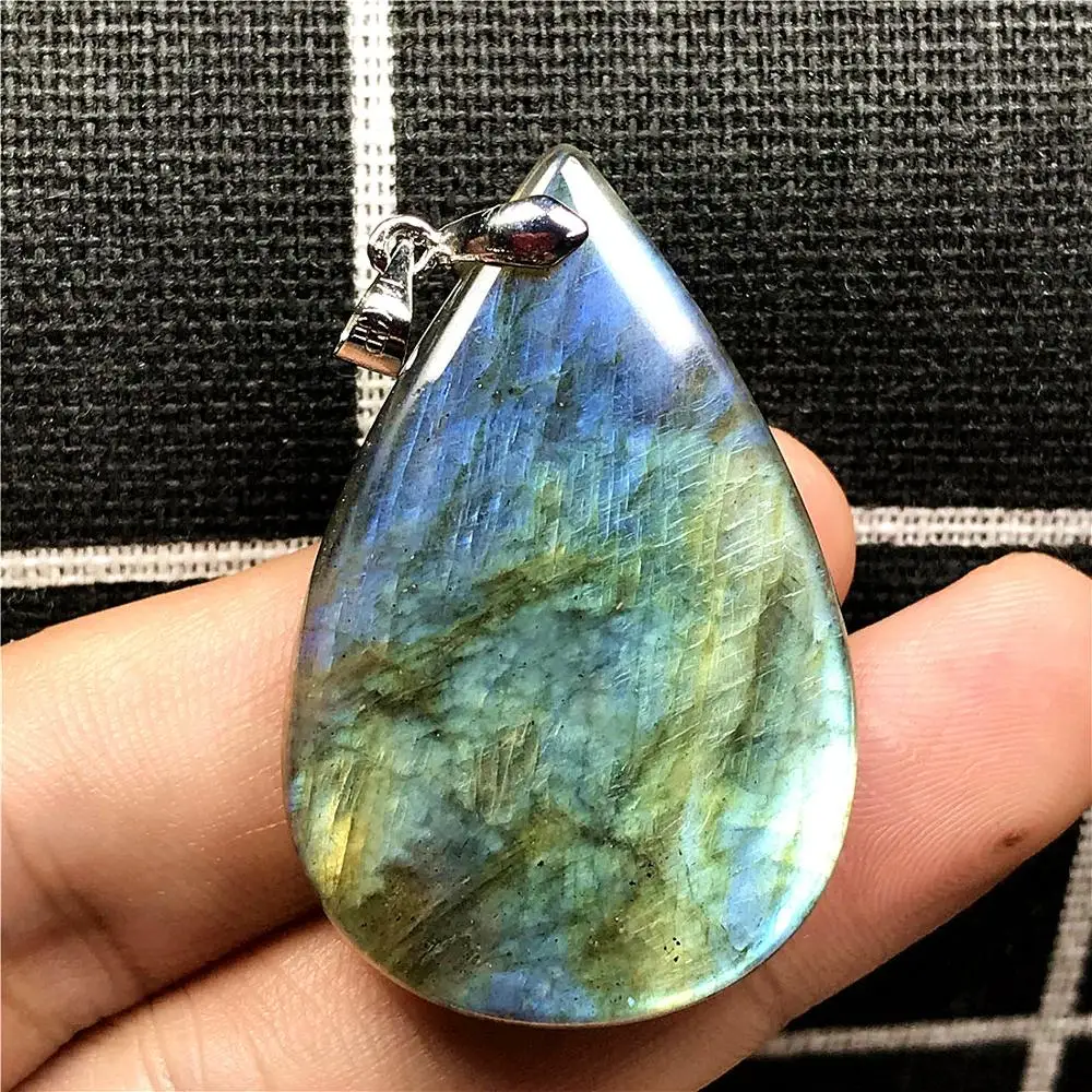 BEST Top Natural Yellow Blue Labradorite Pendant For Woman Man Crystal 40x26x8mm Water Drop Beads Silver
